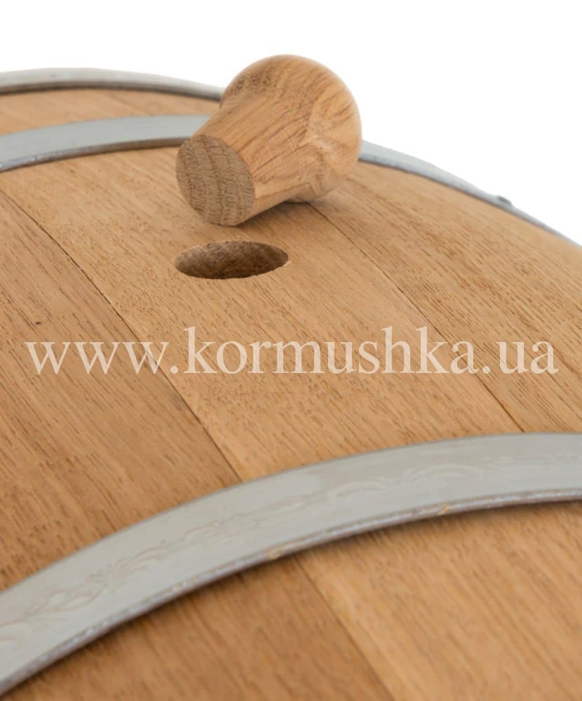 Барило дубове 15 л на підставці обтягнуте металевими обручами (нержавіюча сталь).