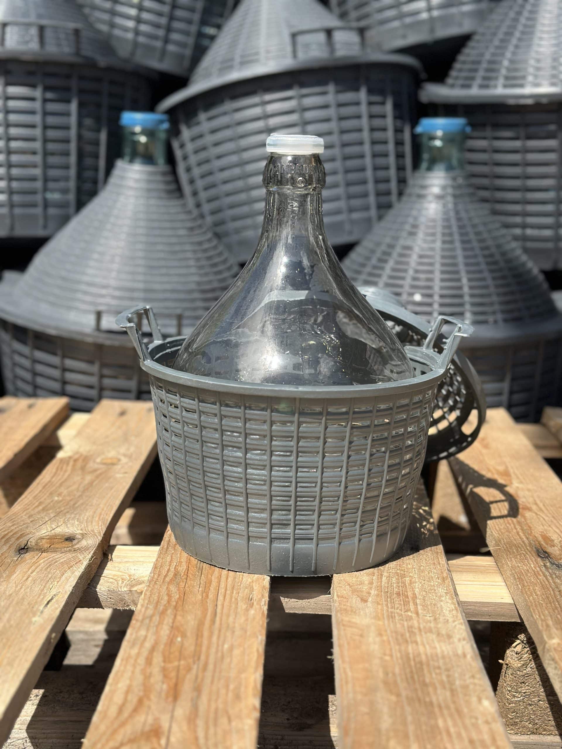 Бутель найкращої якості для бродіння та зберігання вин та інших рідин. В комплект входить захисний пластиковий кошик. Міцні ручки полегшують транспортування ємності. Внутрішній діаметр горловини – 26 мм. Зроблено в Італії.