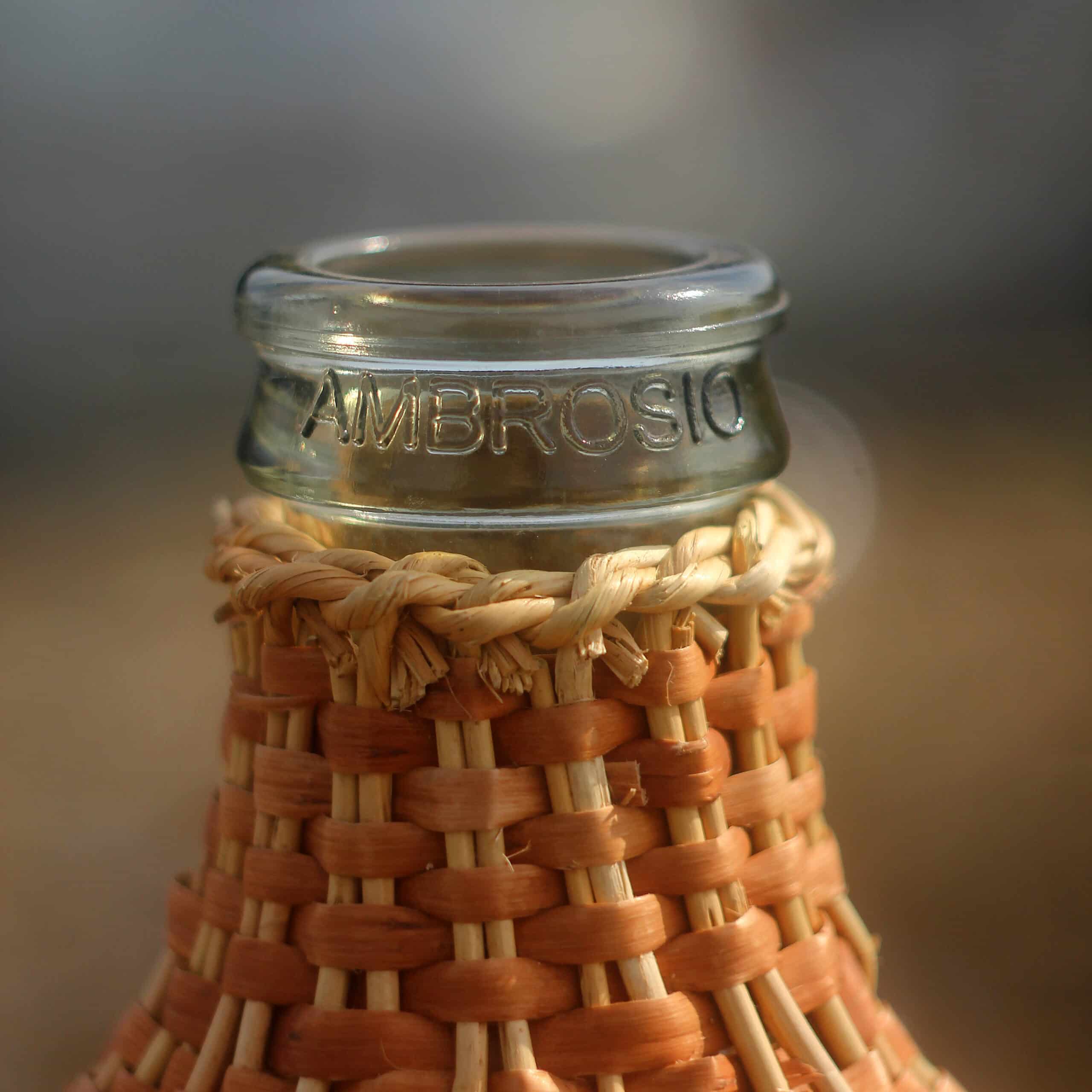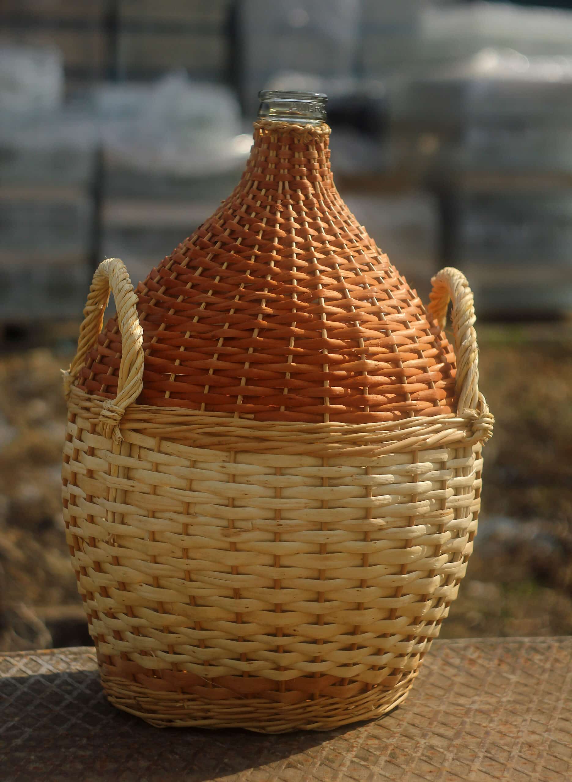 Скляний сулій обплетений майстрами вручну з натуральних матеріалів – вербової лози. Такий посуд зможе прикрасити та зігріти закарпатським сонцем будь-який будинок. Внутрішній діаметр горловини – 42 мм.