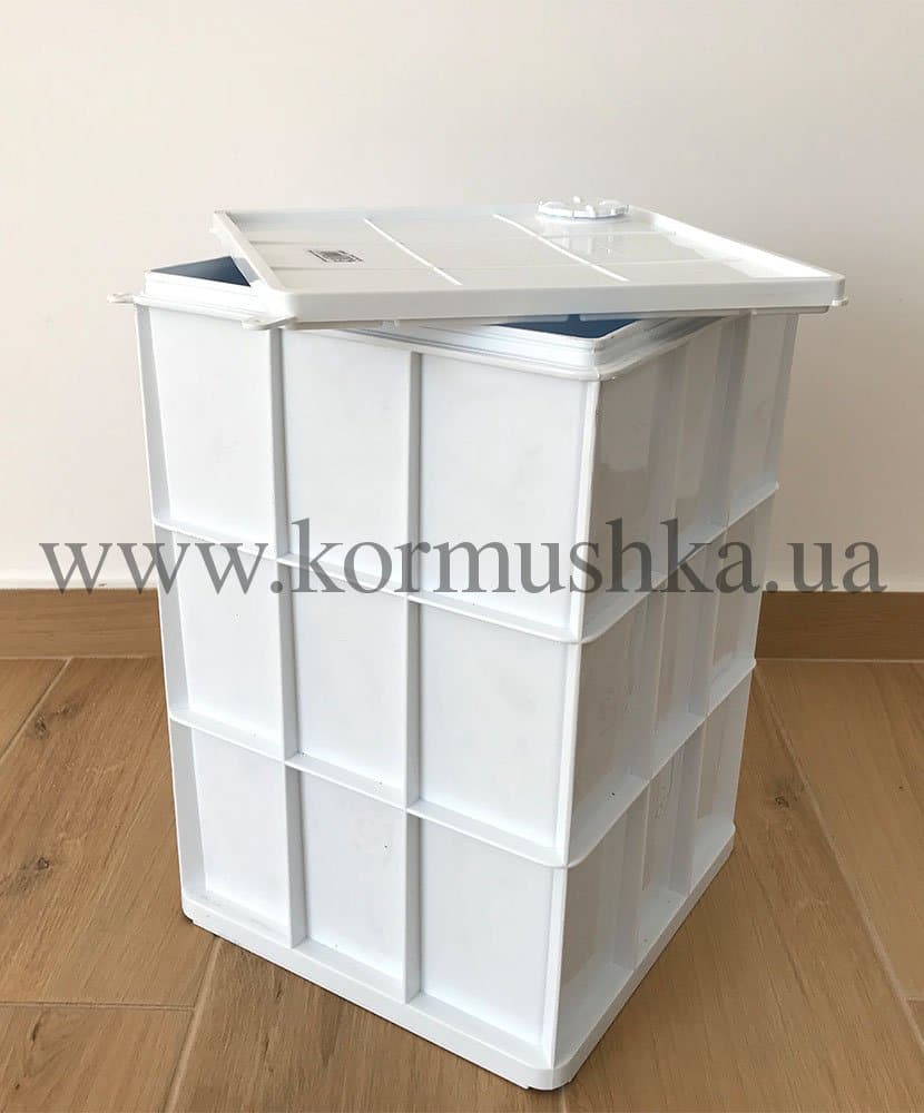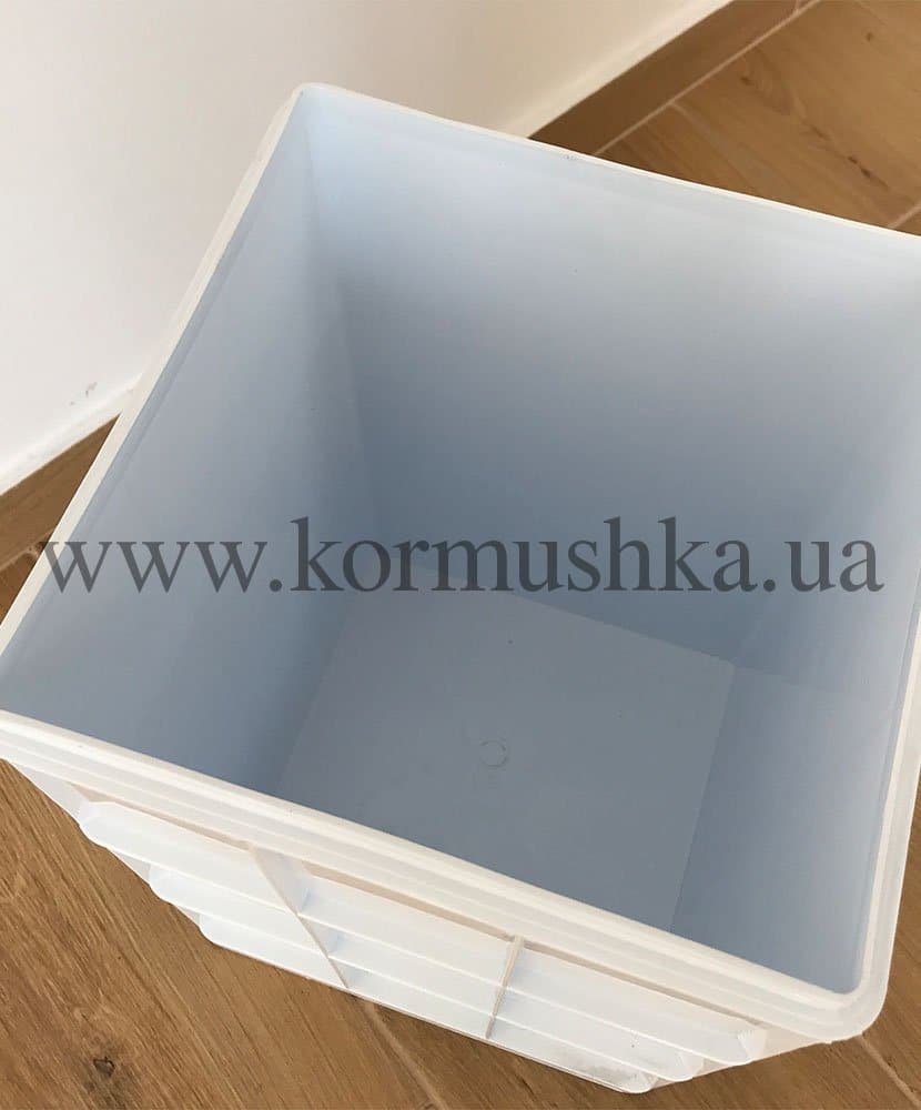 Місткість виготовлена з харчового пластику. Висота 37.5 см, ширина 24.5 см, глибина 24.5 см. Зроблено у Румунії.