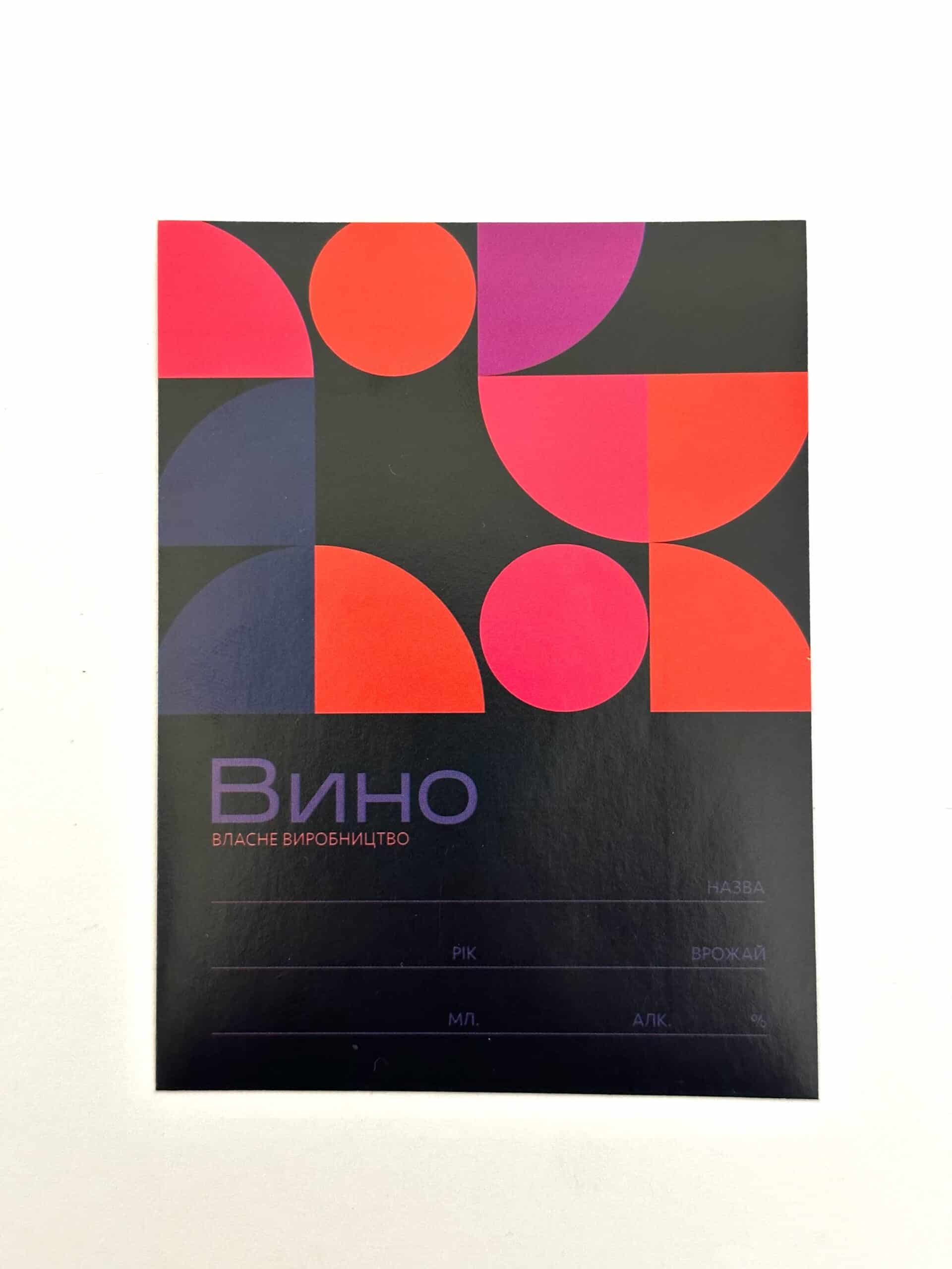 Етикетка надрукована на папері, що самоклеїться. Розмір 90 мм x 120 мм. За бажання Ви завжди можете дописати на етикетці будь-яку необхідну Вам інформацію, наприклад рік урожаю, ім’я та реквізити виробника тощо.