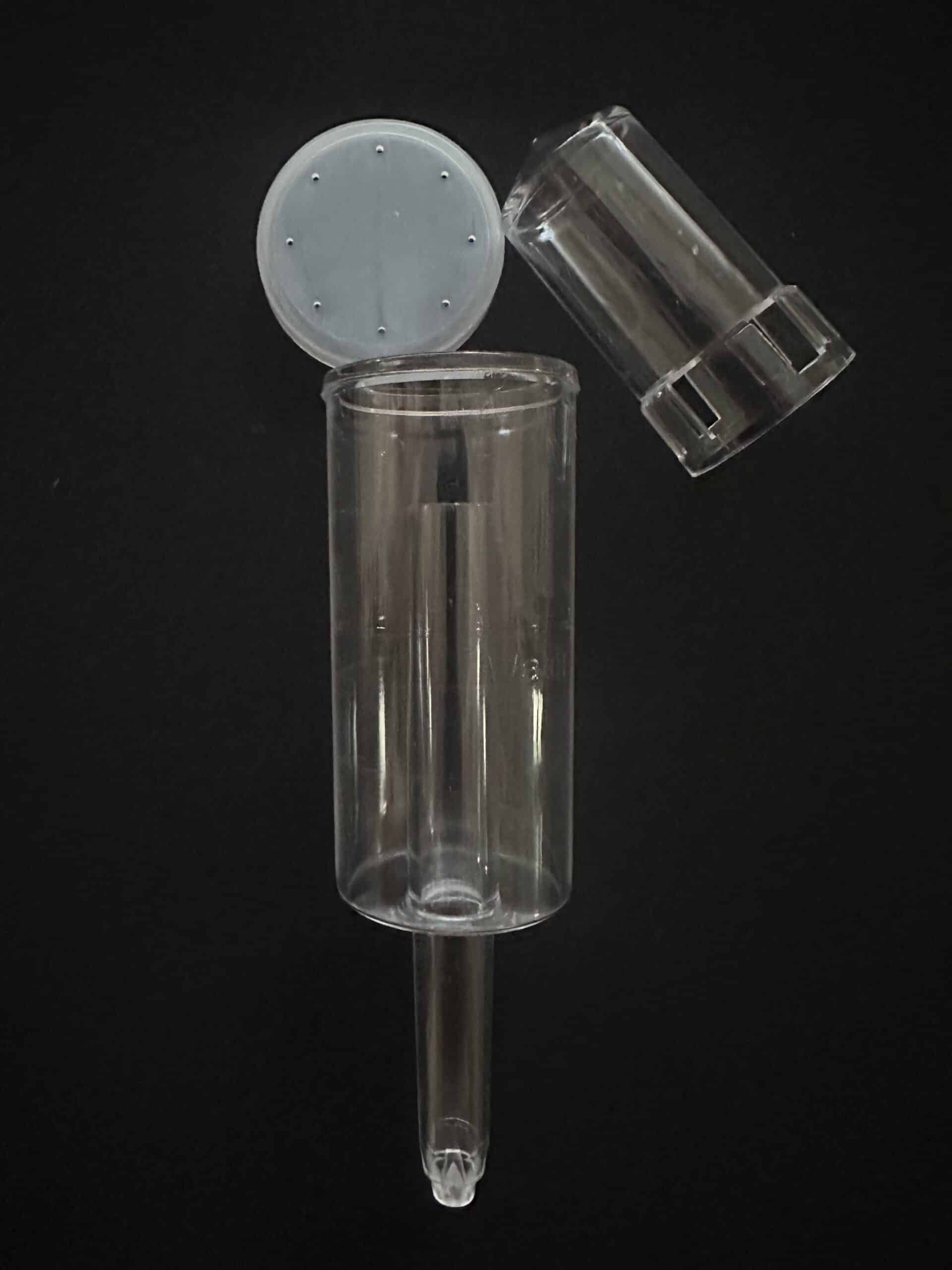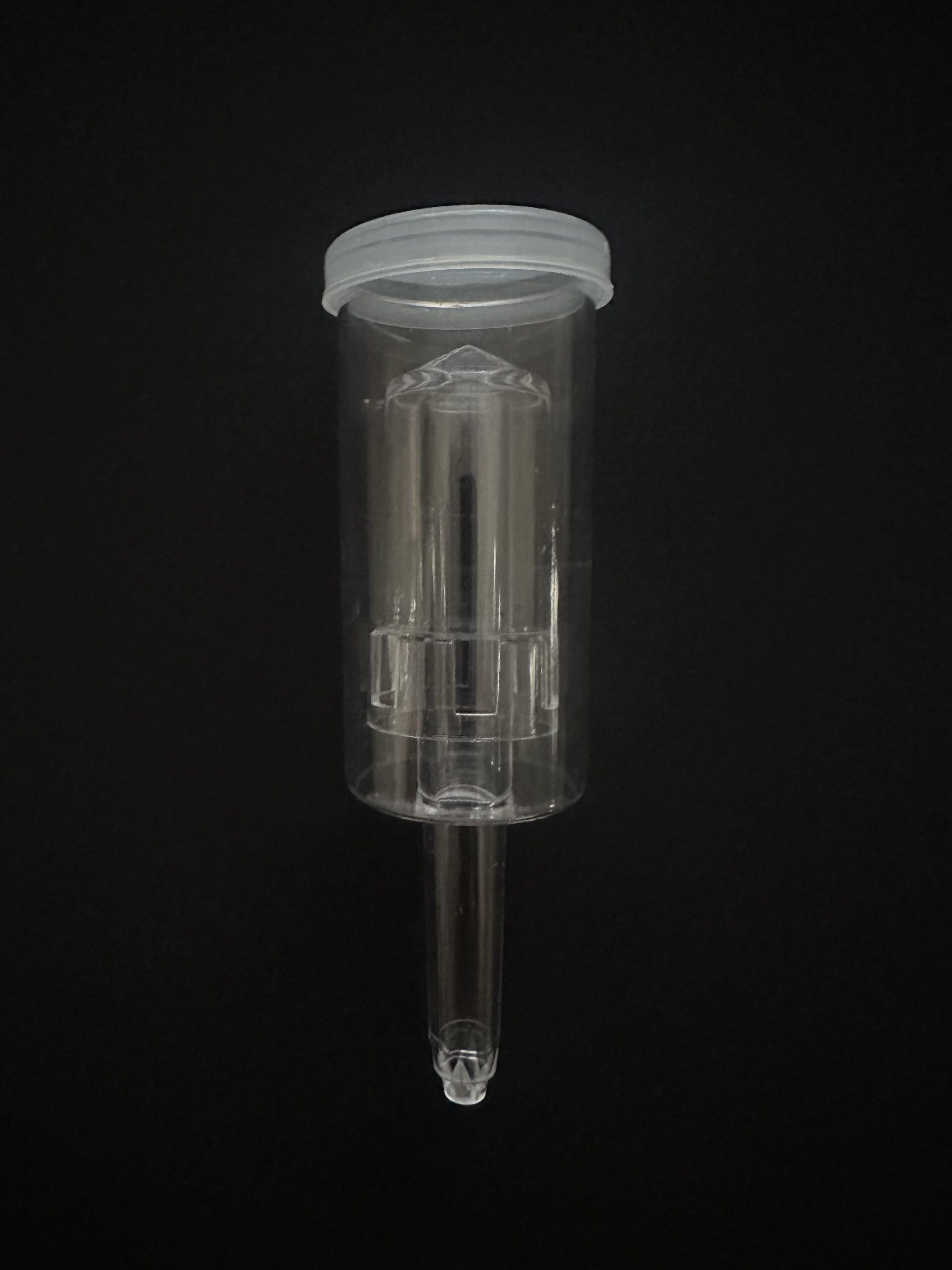 Гідрозатвор для бродіння рідини безшумний, двукамерний, разбірний виготовляється з полістирола та має верхню кришку.