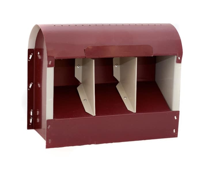 Годівниця виготовлена з листового металу. Встановлюється зовні або всередині клітини за допомогою крючків-кріплень. Зроблено в Україні.