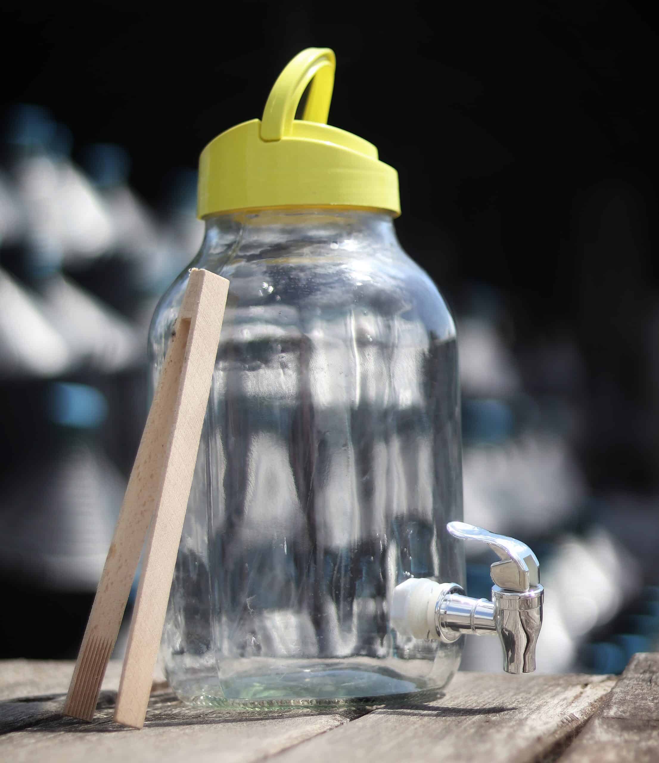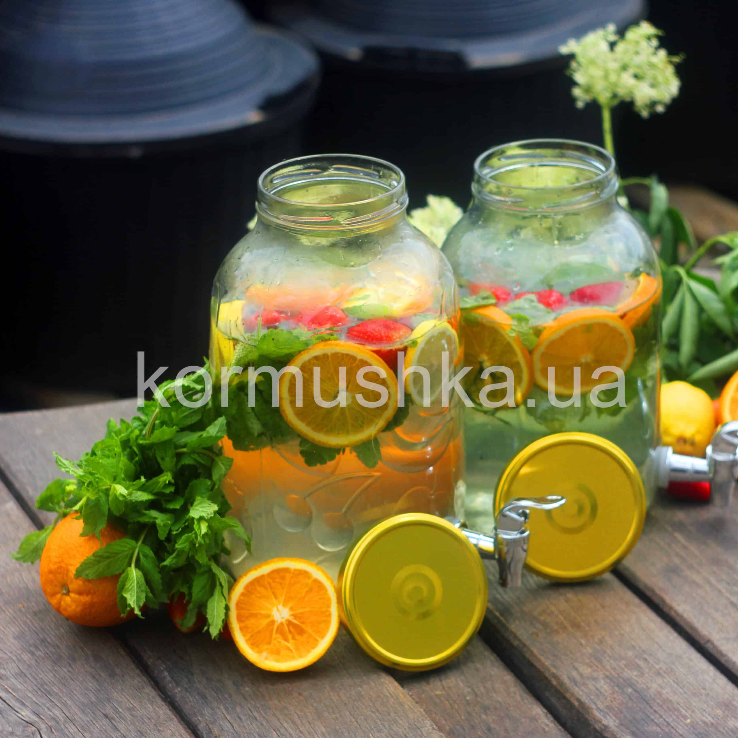 Скляна банка з широким горлом та краном. Ідеально підходить для лимонаду, соку, води, вина.