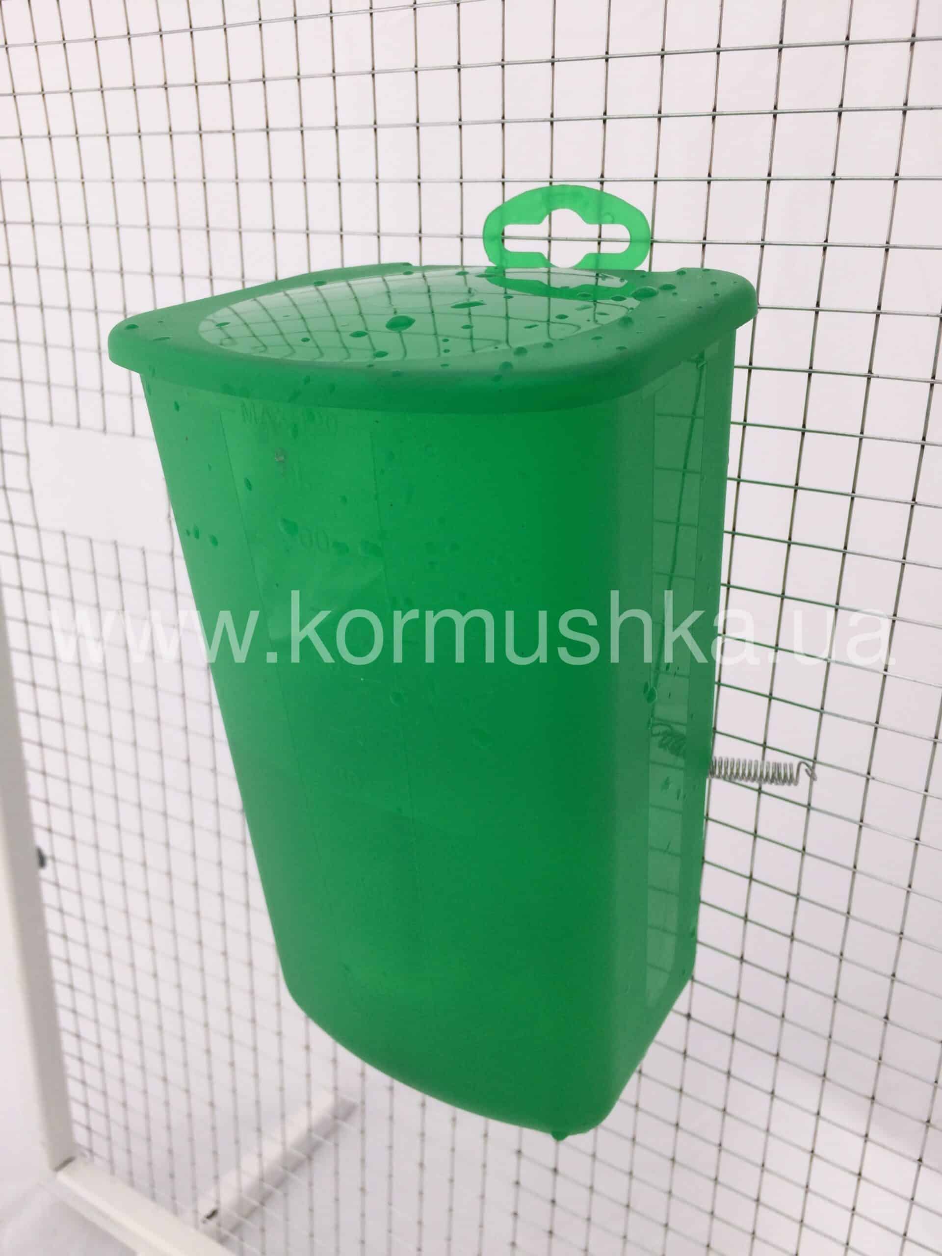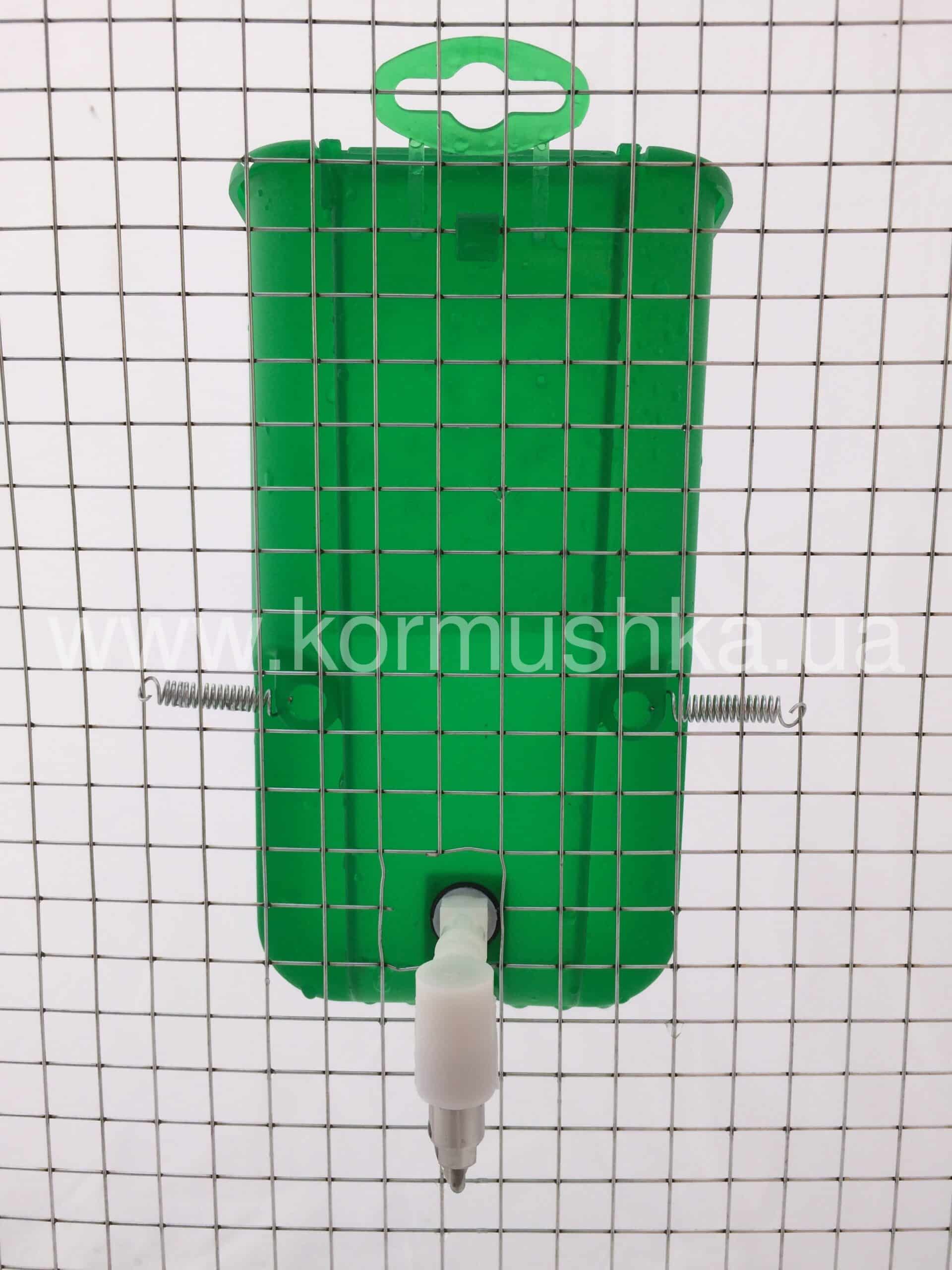 Об’єм напувалки 1 л. Надійно кріпиться до клітини за допомогою пластмасового крюка та 2 пружин. Напівпрозорий пластик із нанесеними мірками дозволяє стежити за наявністю води. Кришка перешкоджає попаданню бруду. В комплект входить якісна розбірна ніпельна напувалка з нержавіючої сталі, тримач ніпельної напувалки (кутовий), кільце ущільнювача, латунна притискна гайка, 2 пружини, ємність 1 л з кришкою.