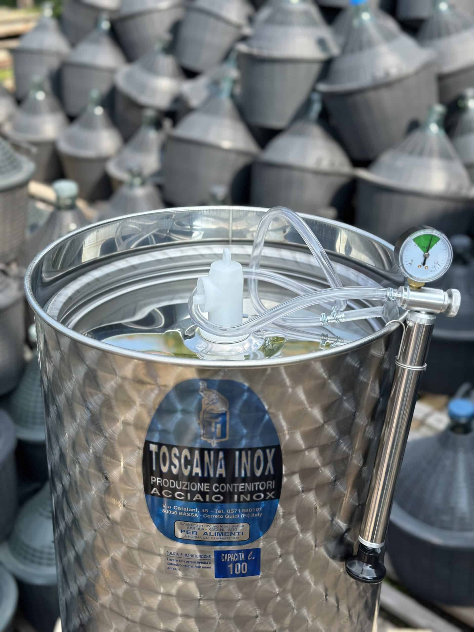 Підходить до ємності 150л та 200л. Комплектується KIT-комплектом, в який входить: силіконова камера, насос з манометром, з’єднувальний шланг, хомути і мотузка. Завдяки випускного клапану, плаваюча кришка може використовуватися як для бродіння, так і для зберігання вина. Манометр на насосі дозволяє стежити за тиском всередині камери, щоб зазор між кришкою і стінкою ємності був завжди надійно ізольований від впливу повітря!