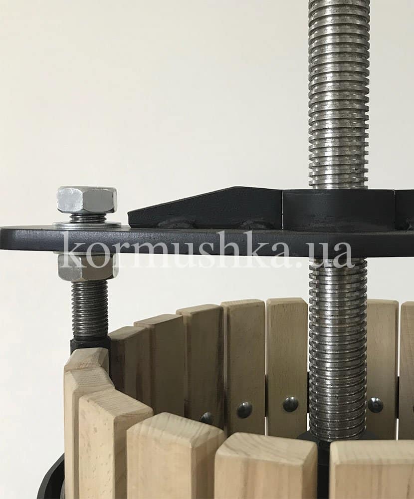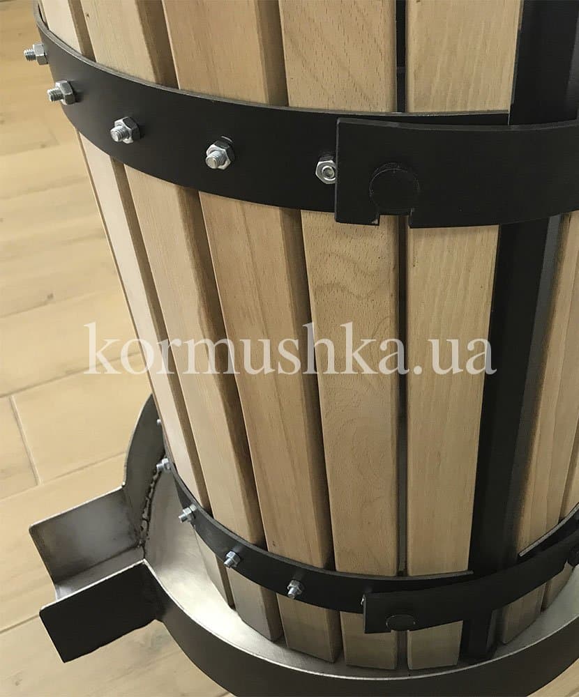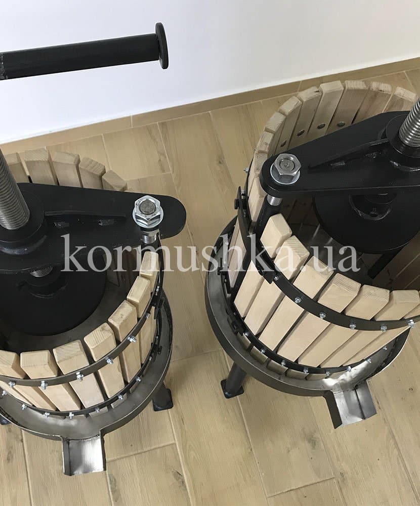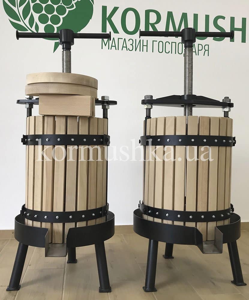 Прес з дерев’яним кошиком ручного типу призначений для вичавлювання соку з ягід, а також подрібнених овочів та фруктів. Використовується в домашньому, фермерському господарстві та виноробстві. Елементи преса виконані із сталі, дерева. Комплектація преса: литий сталевий корпус, дубовий кошик, піддон на ніжках, гвинт, сталева рукоятка, дубова притискна тарілка та дубові підставки на тарілку. Кошик можна відкрити, що спрощує та прискорює процес. Піддон обладнаний зливним жолобом для зручності зливу соку тару. Дуже якісна, проста, зручна та перевірена часом конструкція – робить прес зразком серед аналогів. Такий помічник служитиме Вам та Вашій родині довгі роки!