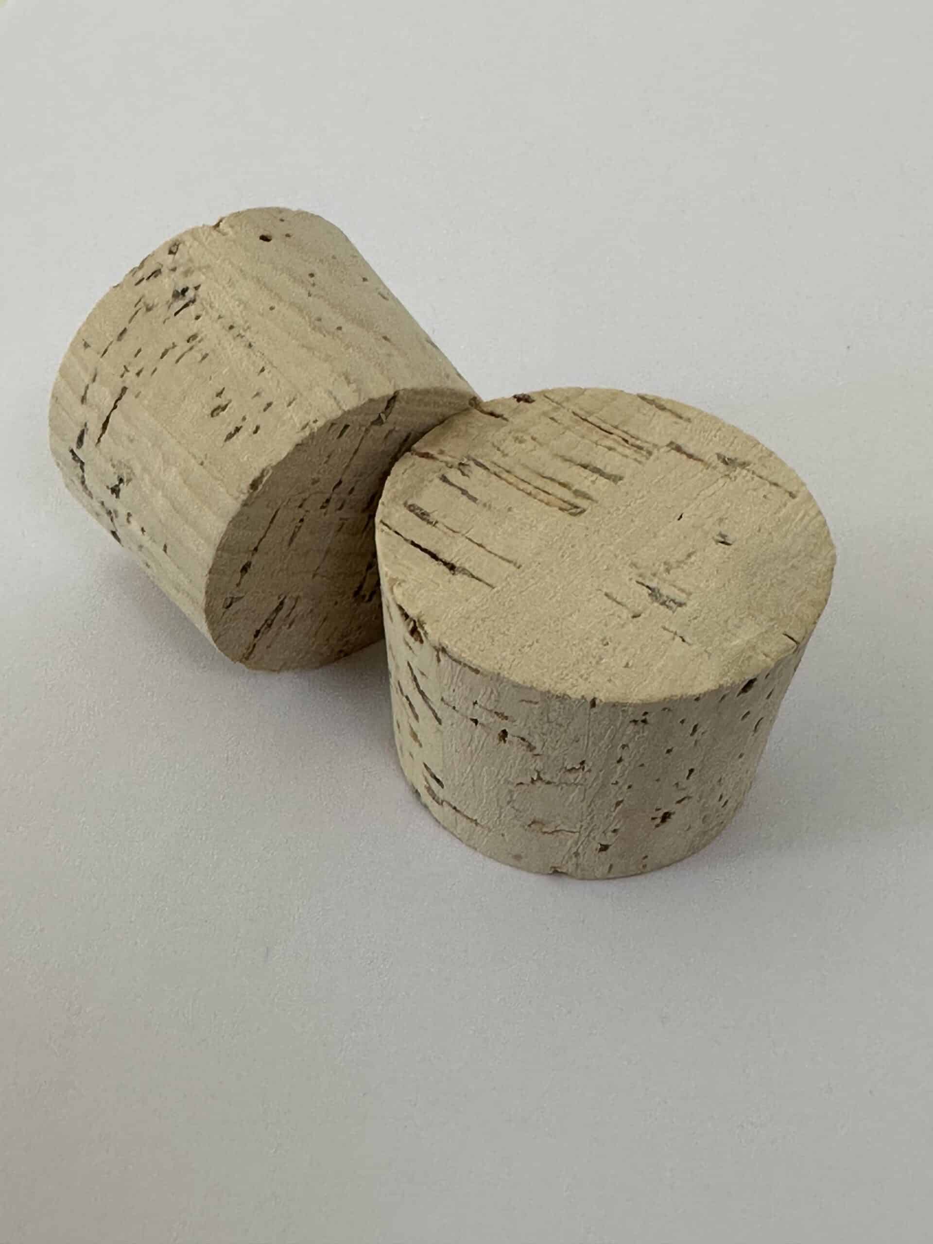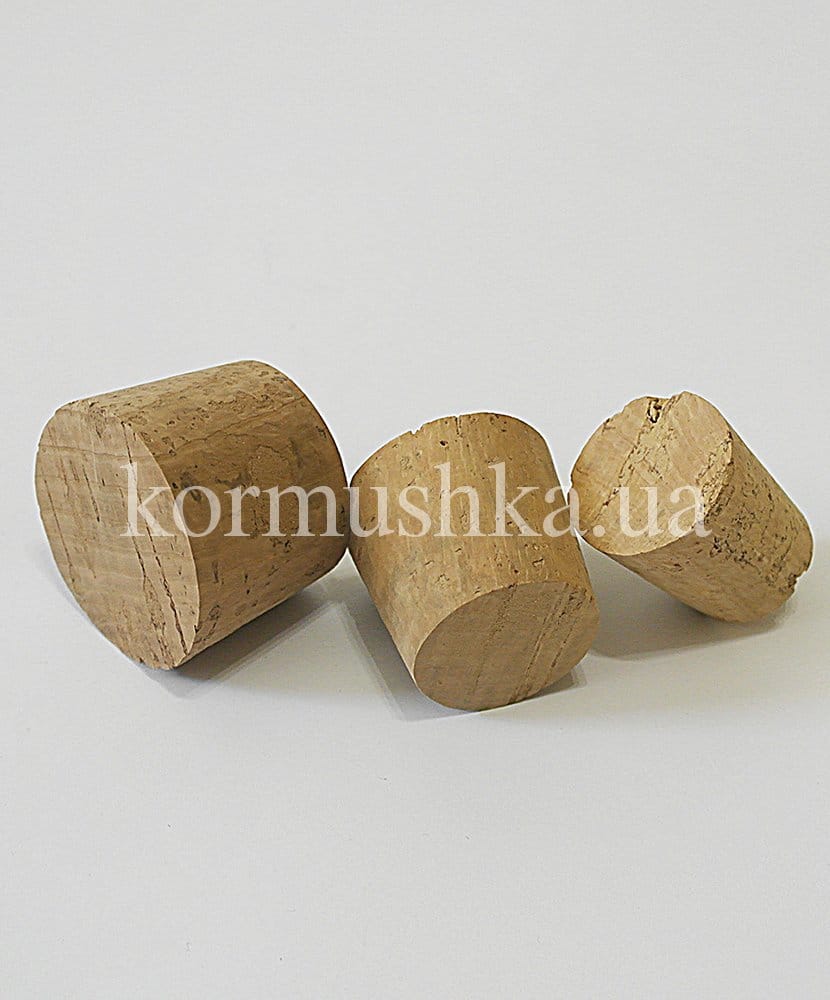 Цілісна пробка з коркового дерева. Верхній діаметр 45мм, нижній діаметр 40мм, висота 32мм.