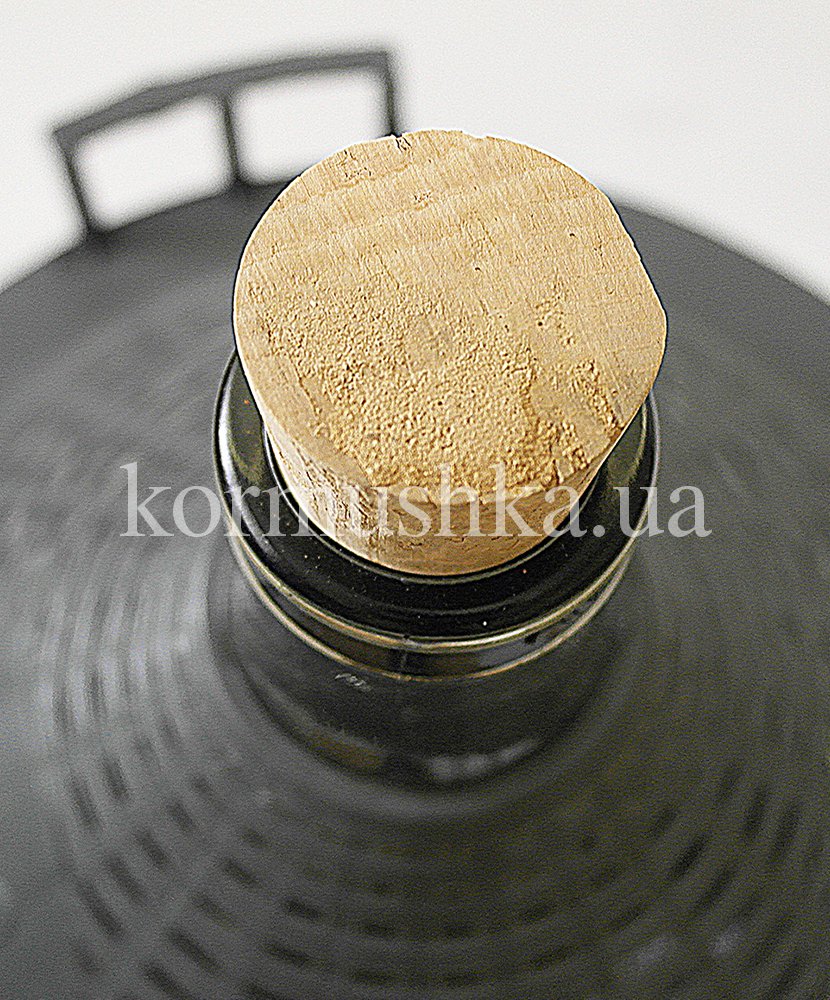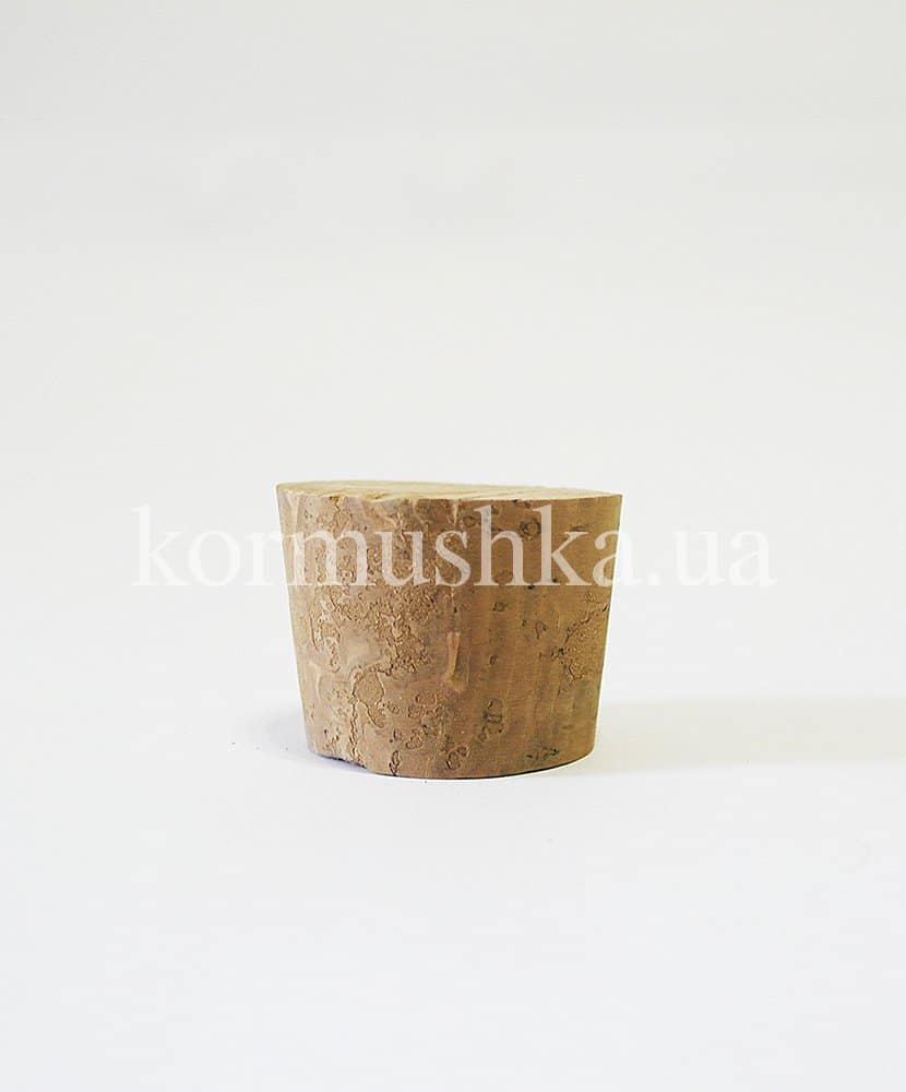 Цілісна пробка з коркового дерева. Верхній діаметр 55мм, нижній діаметр 50мм, висота 32мм.
