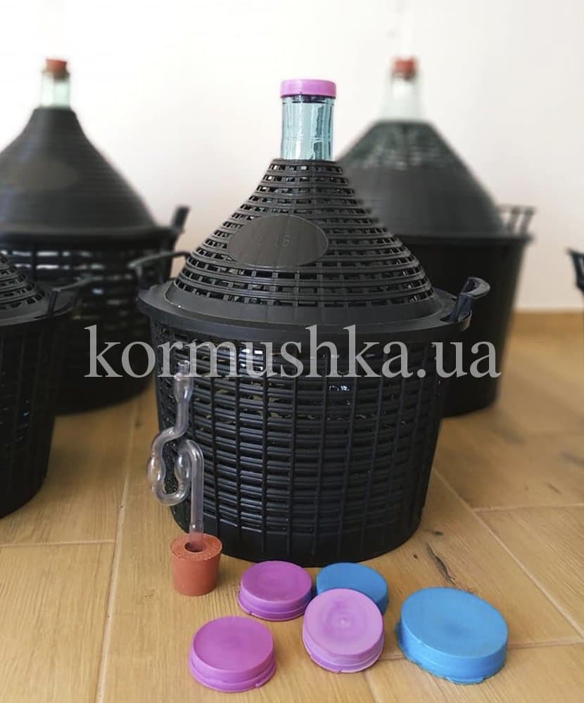 Оптовые цены: – 5 штук – 900 грн. Бутыль отличного качества для брожения и хранения вин и других жидкостей. В комплект входит защитная пластиковая корзина и крышка. Прочные рукоятки облегчают транспортировку емкости. Высота – 54 см, диаметр – 42 см, вес – 5,8 кг. Внутренний диаметр горловины – 38 мм. Сделано в Румынии.