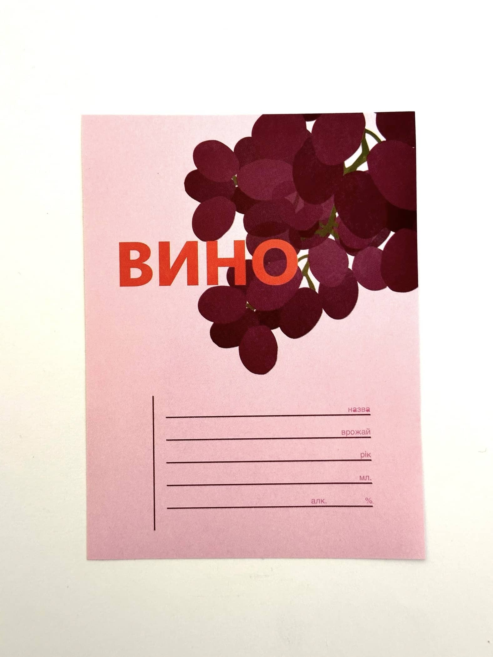 Этикетка напечатана на самоклеющейся бумаге. Размер 90 мм х 120 мм. При желании Вы всегда можете дописать на этикетке любую необходимую Вам информацию, например год урожая, имя и реквизиты производителя и т.д.