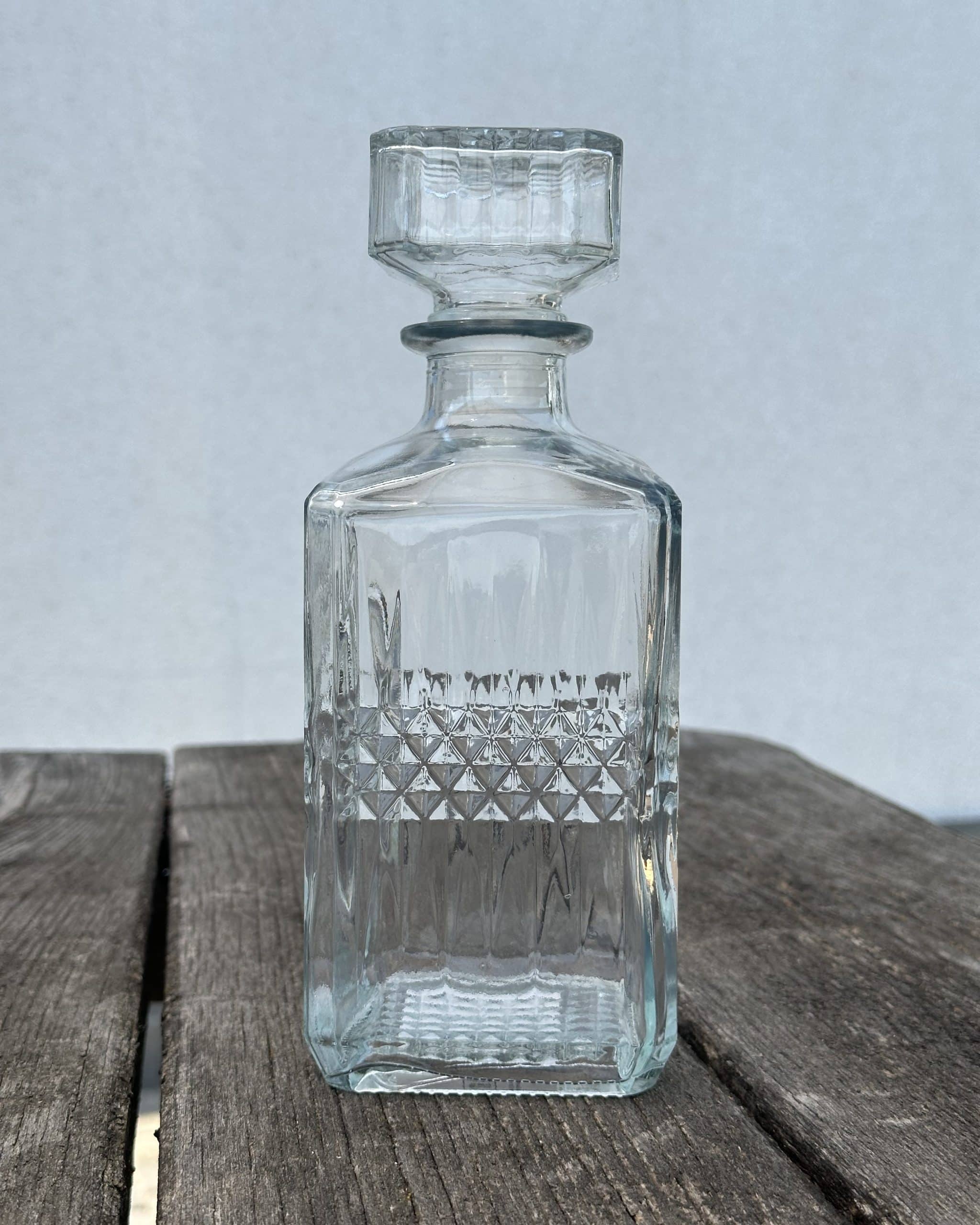 Красивый графин из стекла хорошо подойдет для сервировки вина, виски, водки, воды и других напитков.