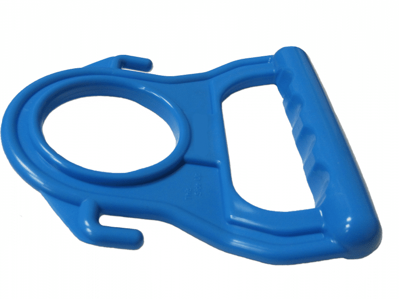 Особенность конструкции ручки в наличии боковых выступов-зацепов, которые позволяют подвешивать и транспортировать 5, 7 и 10 литровые бутыли. А также, с помощью данной ручки можно переносить 3 галлонные бутыли.
