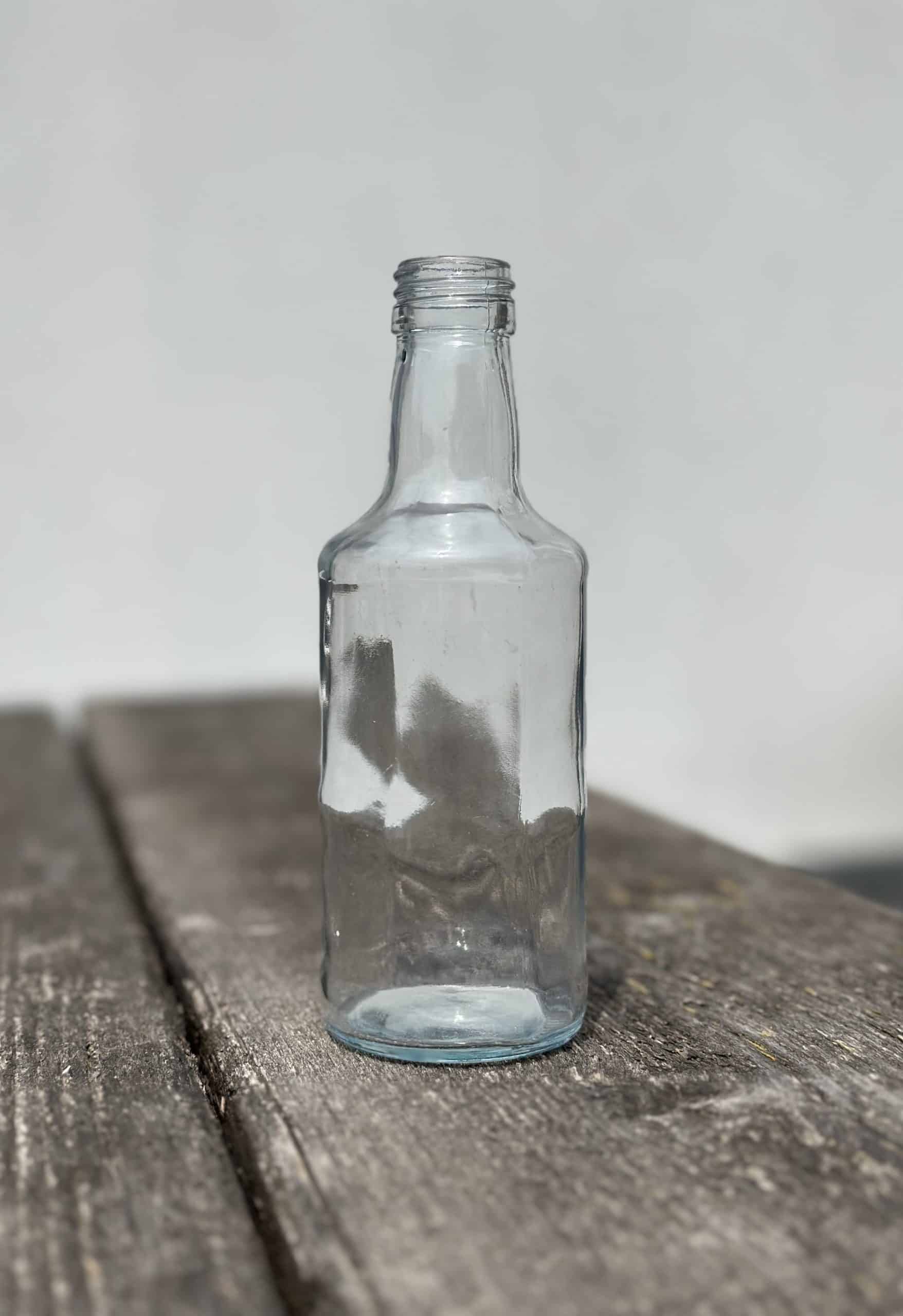 Стеклянная бутылка стандартной формы для водки и самогона. Высота -170 мм, диаметр – 60 мм, высота горлышка -50мм.